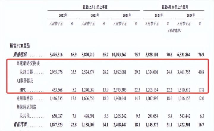 招股书显示,沪电股份是一家数据通讯和智能汽车领域PCB解决方案提供商。产品涵盖高速网络交换机及路由器、AI(人工智能)服务器及HPC(高性能计算)、智能驾驶域控制器等高端PCB。